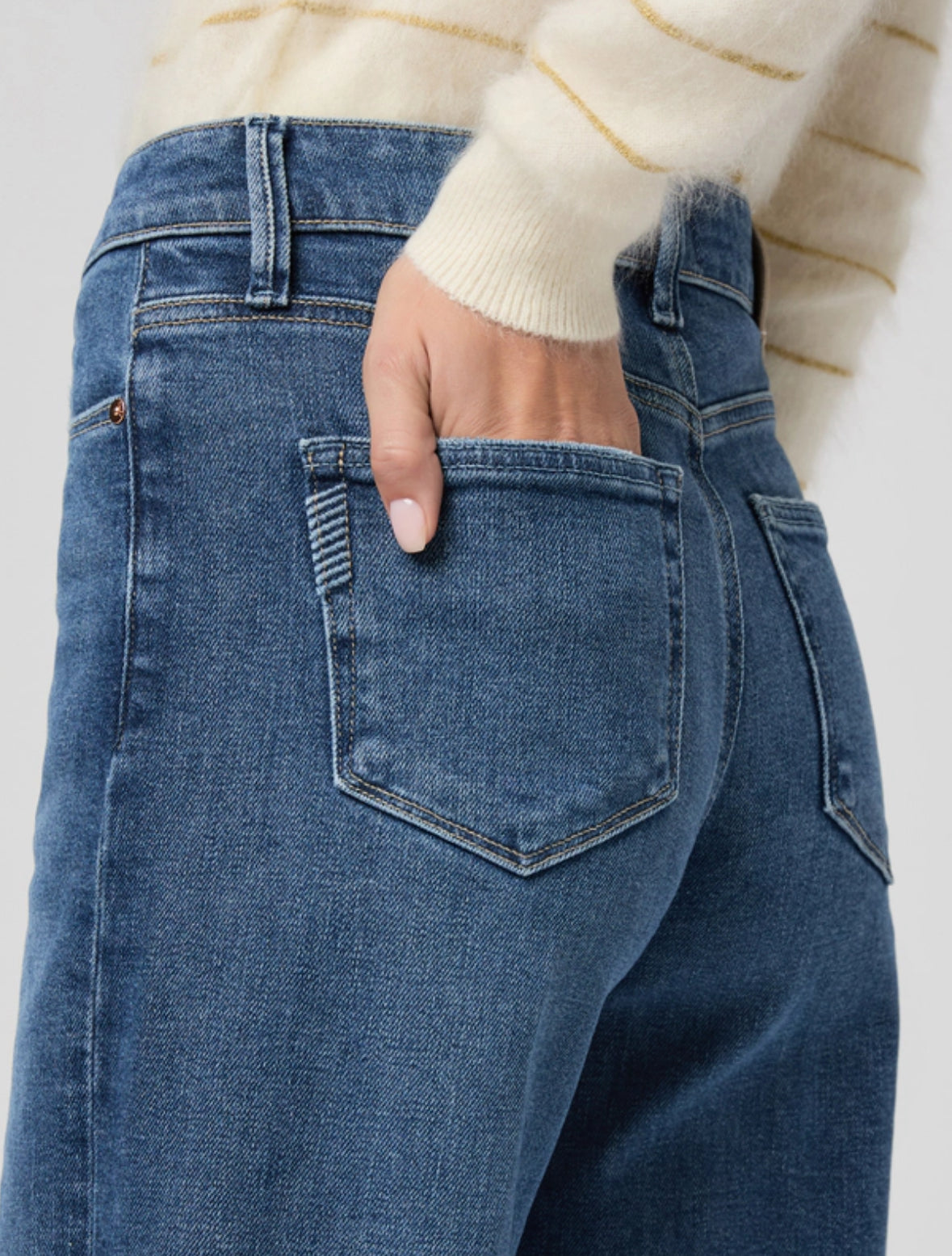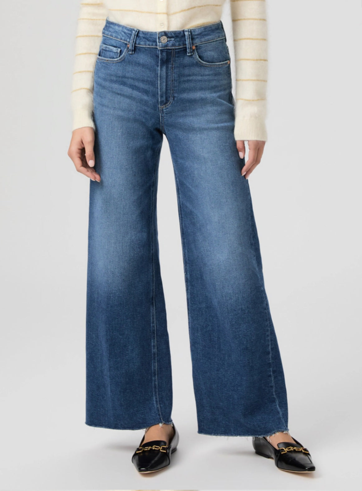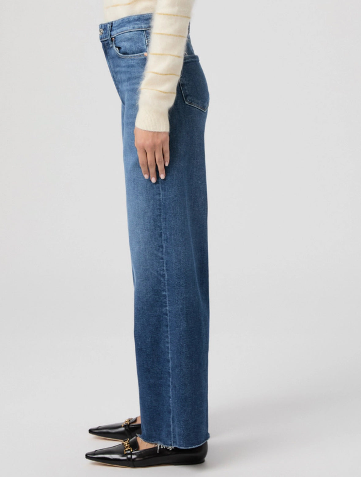 Anessa is our high-waisted wide leg with a slightly relaxed fit and a 31" inseam. Cut from TRANSCEND VINTAGE denim in a textured medium wash with soft whiskers and a raw hem, this pair combines the signature comfort of Transcend with rich denim character for a lived-in look.