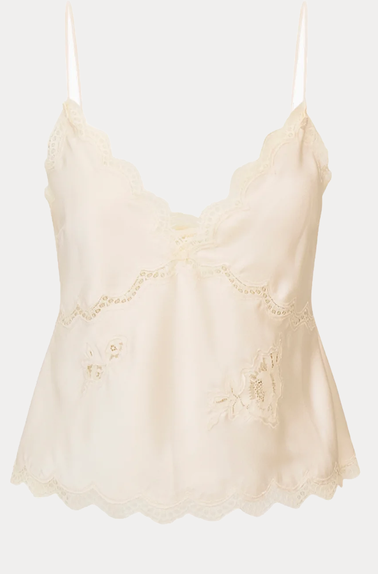 A timeless cami with a vintage-inspired twist, the Evony Top arrives in our luxe, satin crepe fabric with a soft sheen, beautiful drape, and effortless wear. Cut on the bias for a slinky, body-skimming fit, she features a flattering V-neckline, empire waist seam, and scallop lace trims at the neckline, sweep, and waist. Easy to pull on and endlessly versatile, pair with the Vivia Skirt for the full set.