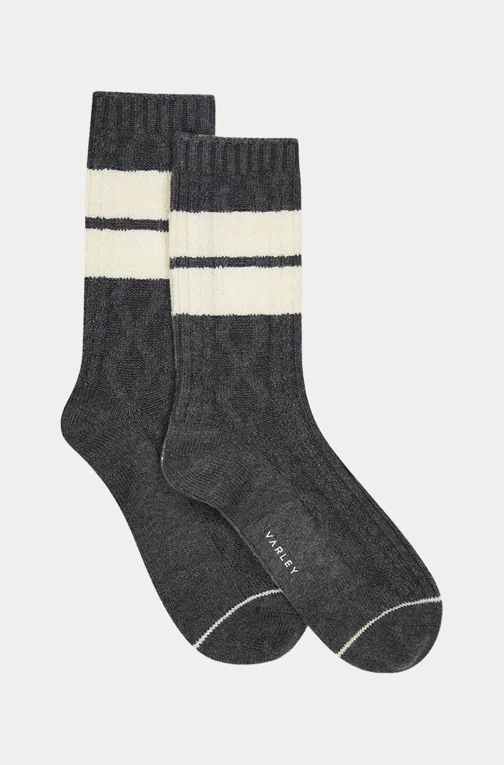 Inspire your essentials edit with the Eagleson plush cable sock. Cut from a soft viscose blend yarn, they're finished with stripe detail for a subtle sporty edge.