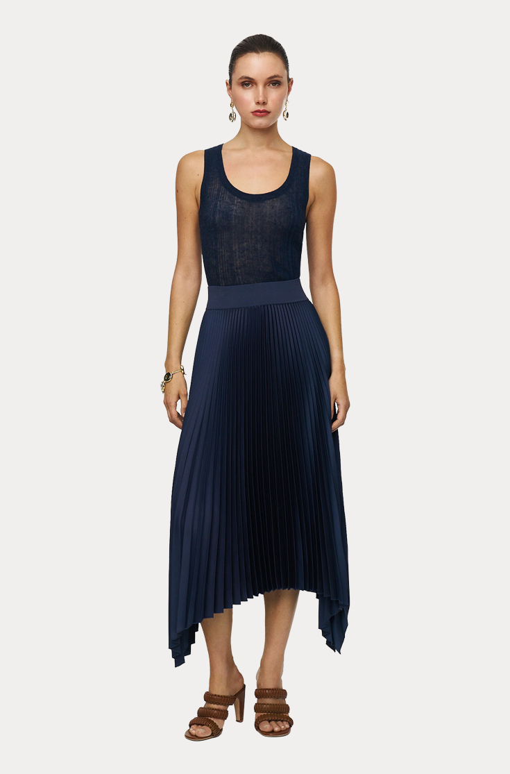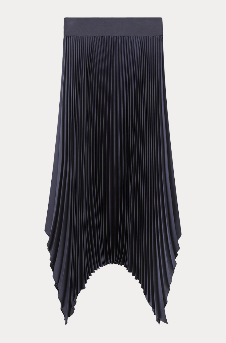 The Ade Knit Weave Plissé Skirt is a pleated midi skirt, with a statement a-symmetric hem. This fluid skirt is crafted from a crepe yarn which offers a smooth, silk-like hand feel. Elegant and versatile, this piece can easily be dressed up or down.