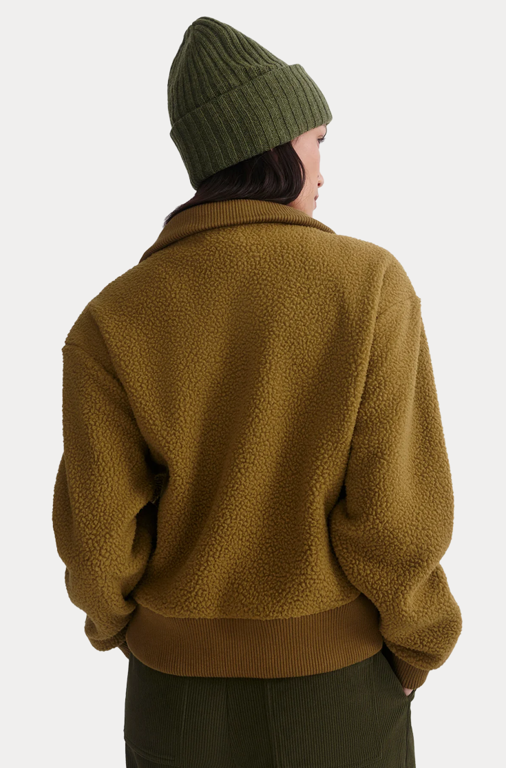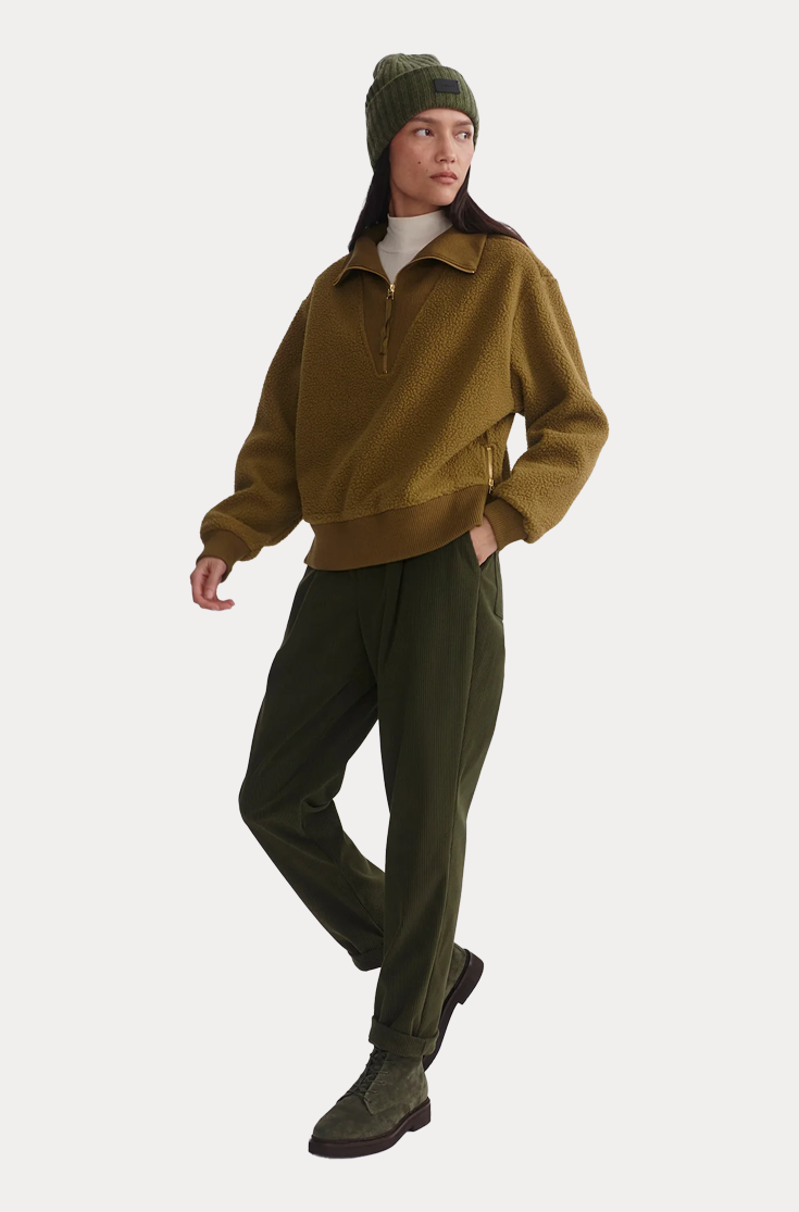 The Jaylin half-zip is crafted from a soft Plush Borg Fleece and cut to a relaxed fit - perfect for layering over your transitional looks or lounging in the winter months. The ribbed hem, cuffs, and the V-shaped rib panel around the collar add extra texture, while side zips at the hem set a subtle accent.