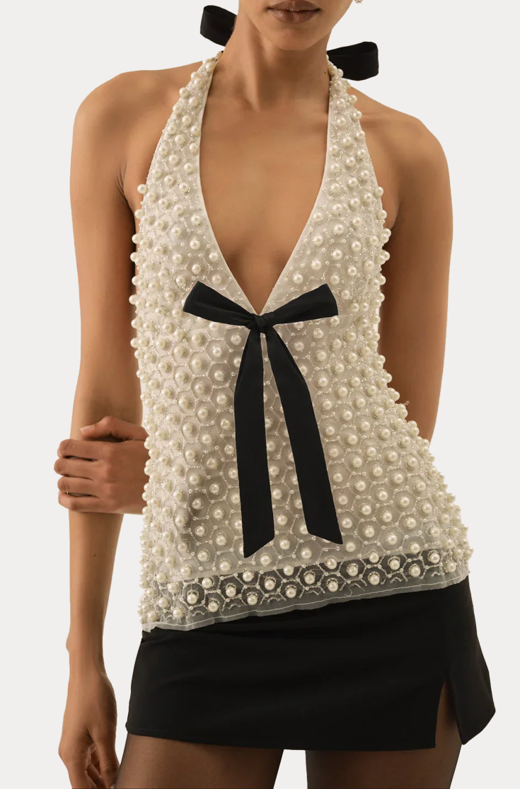 Pearly bow halter top