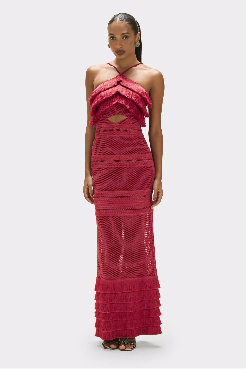 RADIANT FRINGE HALTERNECK MAXI DRESS - 4 (US) / Red is backordered and will ship as soon as it is back in stock.