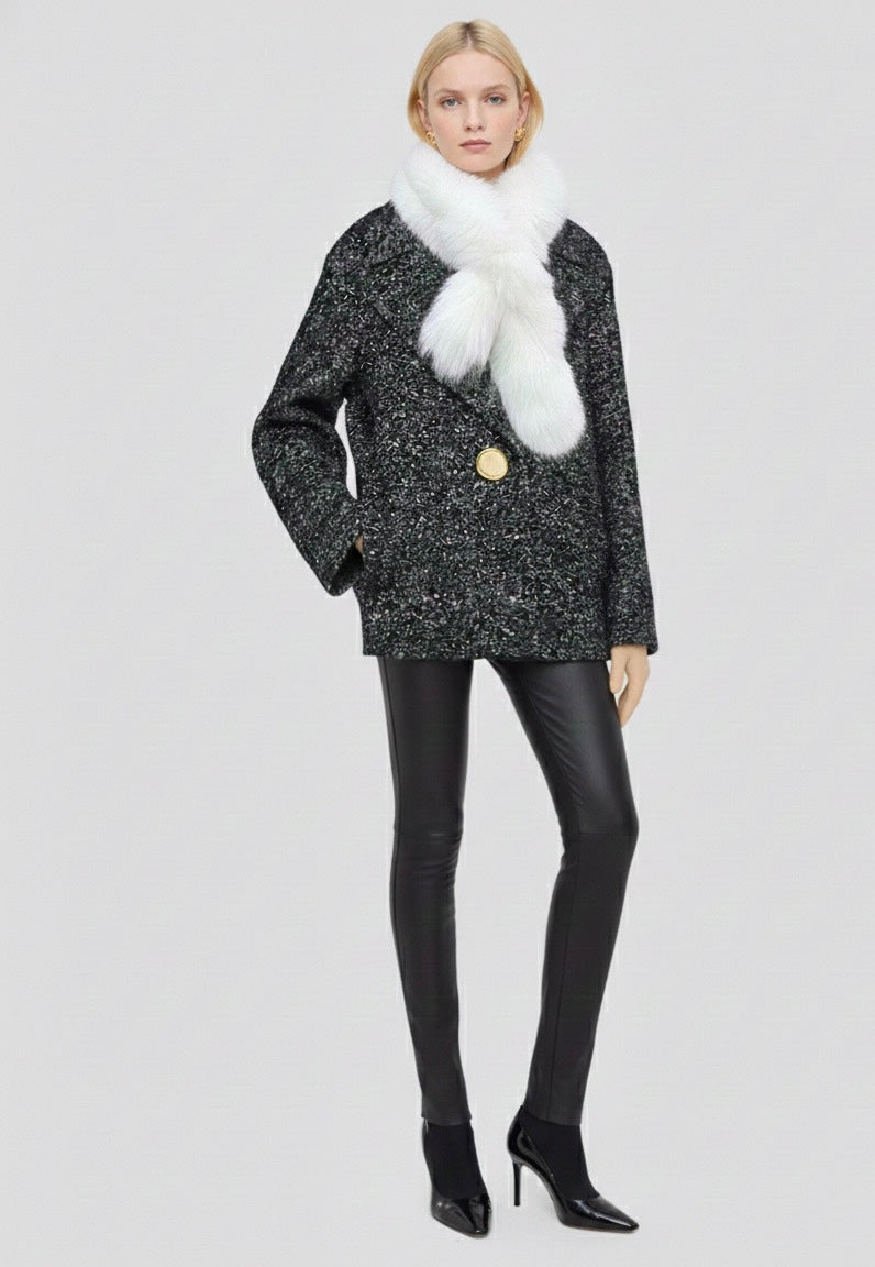 White fox scarf is backordered and will ship as soon as it is back in stock.