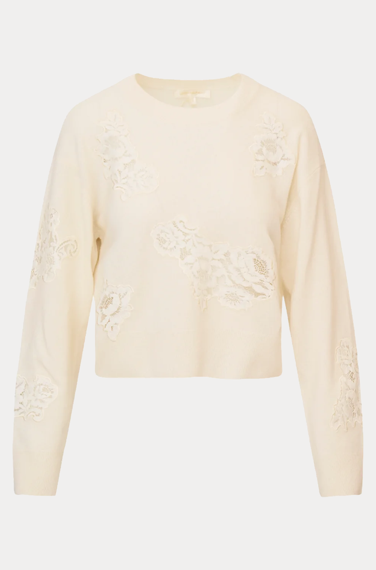 The Lazuli Sweater is a long-line, relaxed pullover crafted in our warm and extra-soft cashmere-wool blend. Featuring inset organic lace shapes throughout the body and sleeves, she offers delicate cutaways that reveal subtle sheerness for a romantic, airy effect. With a longer, less cropped fit than our classic pullover, she layers beautifully over skirts, pants, or dresses, bringing soft texture and timeless charm to any look.