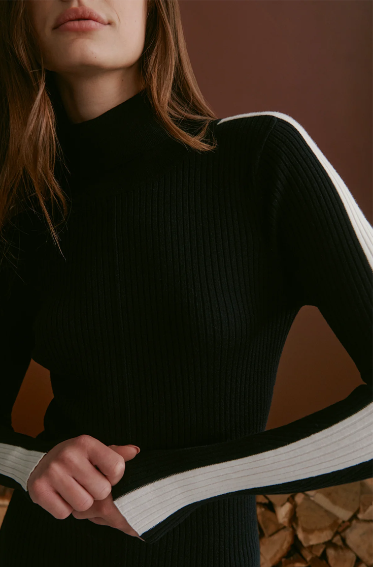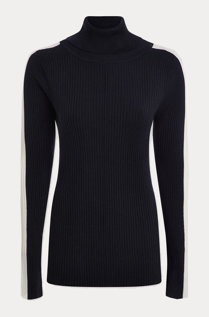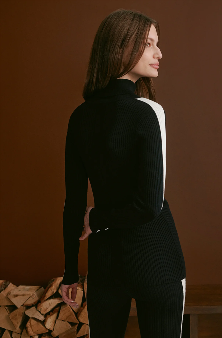 A versatile knitted baselayer for the cold season, the Leopold is a slim-fitting roll-neck knit crafted from Soft Viscose in a fine-gauge rib. Contrast panels across the shoulders and down the sleeves and a seam detail down the front create a chic, elongated silhouette. Pair with the Aiden legging for a comfortable yet coordinated look.